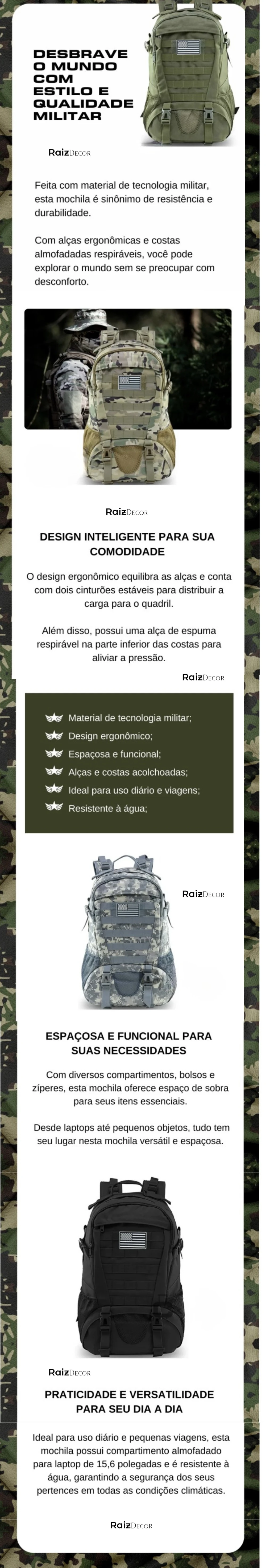 Mochila Militar Masculina Reforçada 35L - Raiz Decor
